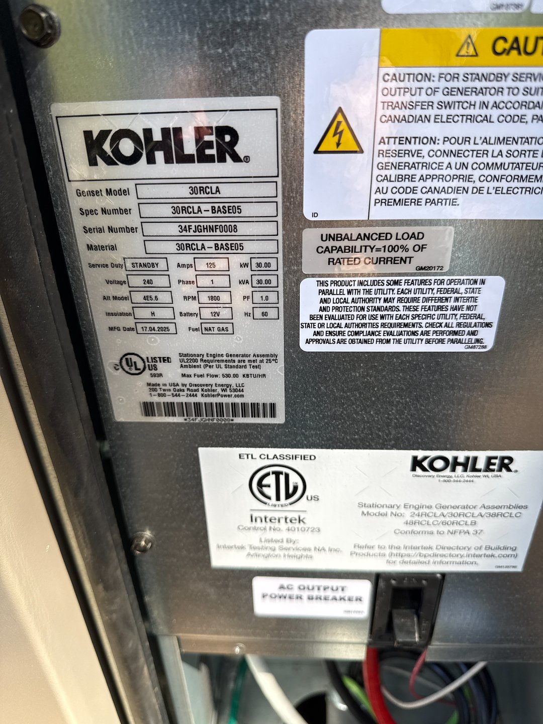 Installed a new Kohler 30 kW RCLA standby generator
